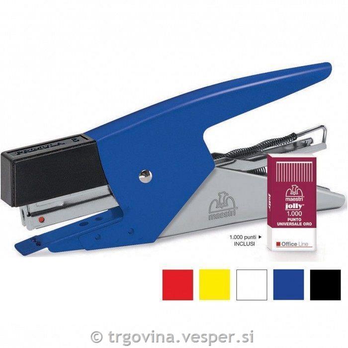 Zelo kakovosten kovinski spenjač - klešče Primula 6 (v različnih barvah). Spenjač uporablja palične sponke Jolly 6 mm za spenjanje do 10 listov.